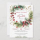 Winter bridal shower watercolor snowy pine wreath with red berries pine cones and gold sprinkles for winter Christmas themed bridal shower
