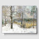 Artist by Zolotareva. watercolor on silk - manual drawing; the stone bridge through the river in the village.A view of a snow-covered bridge in the woods. Frozen Snow Winter Forest Scene.There is snow, spectacular scenery.