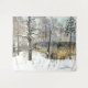 Artist by Zolotareva. watercolor on silk - manual drawing; the stone bridge through the river in the village.A view of a snow-covered bridge in the woods.
