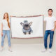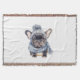 Winter Bulldog Baby in Blue Cap and Scarf Throw Blanket