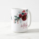 Winter Burgundy Rose Floral Pine Branch Monogram Coffee Mug