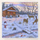 Winter Cabin Deer In Snow Christmas Scene Glass Coaster