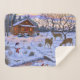 Winter Cabin Deer In Snow Christmas Scene Sherpa Blanket