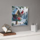 Winter Cardinal on a Festive Birdhouse Square Wall Clock