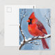 Winter Cardinal Red Bird Watercolor Painting Postcard