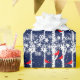 Bright red Cardinals in white Birch trees on a snowy Winter's night