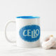 Patterned cello text in a blue decorative oval is a unique gift design for string musicians, school music teachers and students in orchestra and string ensembles.