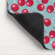 Winter cherry. Red ripe cherry berries on a grey-turquoise background with white dots.