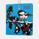 Winter Chickadee on Holly Woodcut Winter Holidays Ceramic Ornament