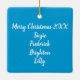 at christmass as a hanging decration for the chritmass tree.. its white porcline or cramic but very well made with added photo on one side.. also has a lovley red bag to keep it in.. execlent printed text in bold and black stands out well aganst the blue background of the photo.