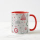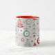 Winter Christmas pattern. Stylised red, green Christmas trees, Christmas balls on a light background.