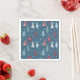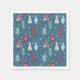 Winter Christmas pattern. Stylised red, green Christmas trees, Christmas balls on a blue background.