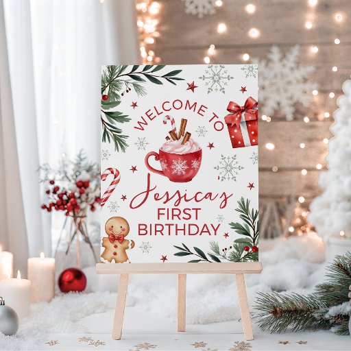 A festive winter-themed “Happy Birthday” banner featuring red lettering, candy cane stripes, pine greenery, snowflakes, and holiday-inspired accents. Perfect for winter or Christmas birthday parties, this cozy cocoa-inspired design adds a warm seasonal touch to your celebration décor. Ideal for children’s parties, first birthdays, and holiday-themed events.