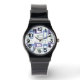This women's watch has a mid-century modern design of repeating parallelograms in blues and greens with white parallelograms on top. Like this design but want different colours? Message me.
