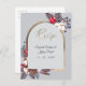 Winter Cotton Dusty Blue Red Berries Arched Rsvp Invitation Postcard
