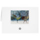 A beautiful illustration of crane birds walking in the snowfall. The cranes have mother of pearl look embellishments in their feathers. A very pretty illustration. Ready to personalise.