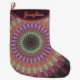This personalised 2-sided custom-made Christmas Stocking features a fascinating abstract vision of a large Dahlia created with layers of interlocking gears in warm, muted colours such as Thyme Green, Fig, Malaga, Antique Rose, Lint Green, Clay, GrapeAde and Lupine. From an original painting by digital artist, Leslie Sigal Javorek. Choose from 3 Fabrics.
