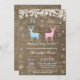 Winter Deer Gender Reveal Invitation. White Snowflake. He or She. Boy or Girl. Pink and Blue. Christmas Holiday Gingerbread Man. Burlap Background. Country Vintage Retro Barn. For further customisation, please click the "Customise it" button and use our design tool to modify this template.