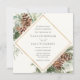 Elegant Winter-themed wedding invitation features a gold frame surrounded by watercolor evergreen, pines and winter florals. Personalise with your information or click "Click to customise further" to edit font styles, size and colours.