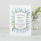 Watercolor foliage evergreen blue-grey spruce fir tree pine needles wreath rescheduled to winter wedding invitations. ideal when a spring summer or fall wedding is moved to a winter wedding event. Personalise with your own wedding details. Original watercolor art by Sarah Trett for www.mylittleedenweddings.com on Zazzle.