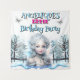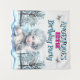 A beautiful illustration of a magical light skinned fairy princess with long white hair and matching fairy wings is wearing an off the shoulder dress and has deicate jewels on. She is standing in a snow covered forest filled with snow laden trees set against a stark white background that has fancy sky blue and hot pink text templates on it for your custom wording. Two delicate butterflies flank the lettering. This party wall decoration is ideal for both kids and adults alike. They are great for any age birthday and winter wonderland parties for little girls! Feel free to change the colour of the background and the text to any of your personal choice.