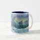 WINTER FARM & SNOWFLAKES by SHARON SHARPE Two-Tone Coffee Mug