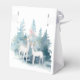 Romantic wilderness themed wedding favour box with beautiful watercolor artwork of lovely winter pine cones and flowers, on the front and a winter scene with white deer, on the back all done in soft pastel colours. Personalise the text to suit your wedding needs. Matching products are available.