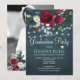 Classy winter graduation party stylish invitation template on a dark navy blue chalkboard featuring a beautiful wine burgundy and white peony roses bouquet with hunter green foliage, strings of white twinkle lights, and a chic typography script. ++++++++++++++ Easy to personalise with your details! +++++++++++++++ The invitation is suitable for elegant winter rustic country / farmhouse / cottage / Christmas graduation celebrations.