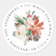 Dress up your holiday envelopes with our Winter Floral holiday return address labels. The festive stickers feature a bouquet of watercolor poinsettias, ivory flowers, holly berries, pine cones & branches with your name and address bordering the round sticker against a white background.