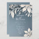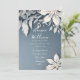 Magical winter wonderland wedding Invitation featuring crisp white winter flowers against a gradient icy blue backdrop.