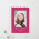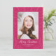 Stylish Winter Flourish holiday photo card design with raspberry background, beautiful winter foliage border, and "Merry Christmas" in an elegant script font.