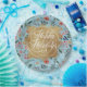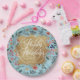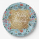 Happy Holidays in chic white lettering on a splatter of faux gold foil on poinsettias and winter flowers on a blue background, these paper plates are also personalised with your name. Great for your home or gift as gifts. MATCHING napkins and MORE designs in our store.