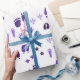 This wrapping paper has a winter design of different forest animal footprints crossing paths.