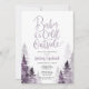Affordable custom printed winter baby shower invitations in a pretty colour palette of muted purple and grey. This sweet design features a forest of watercolor evergreen trees and modern hand lettering style script that says Baby It's Cold Outside - perfect for a rustic winter baby shower theme. Personalise it with your event details for baby girl. Use the design tools to choose any background colours, edit the text fonts and colours or upload your own photos to create a one of a kind winter baby shower invitation.