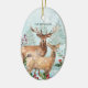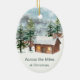 This design features an illustration of winter forest - pine trees, deer and log cabin, covered with snow