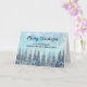 Merry Christmas for goddaughter and her family card with a charming rustic winter forest scene and snowy watercolor sky.