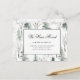 These modern, holiday moving announcement postcards feature a trendy watercolor winter pattern of green pine trees, bare forest branches, and lots of snow.