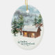 Winter forest, log cabin, antlers Ceramic Ornament