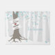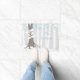 A winter doormat featuring an illustration of a snowy forest with a tree with blue, white, and silver leaves that has banner wrapped around trunk. Personalise the names.
