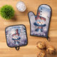 Add some holiday cheer to your holiday baking this year with a set of Purple Winter Forest Snowman Christmas Personalised Oven Mitt and Pot Holder Set. Set design features a cute snowman in a charming top hat and scarf standing in a winter forest scene with falling snow. Additional kitchen items available with this design.