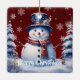 Add a charming touch to your tree this holiday season with a Red Winter Forest Snowman Christmas Holiday Ceramic Ornament. Ornament design features a cute snowman in a charming top hat and scarf standing in a winter forest scene with falling snow. Additional gift and holiday items available with this design as well.