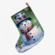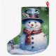 Add a festive touch to your fireplace mantle this holiday season with a Green Winter Forest Snowman Christmas Stocking. Stocking design features a cute snowman in a charming top hat and scarf standing in a winter forest scene with falling snow with a space you can add your name for personalisation. Additional gift and holiday items available with this design as well.