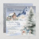 A winter-themed birthday invitation featuring snowy mountains, falling snow, evergreen trees, and watercolor deer, with elegant script typography, a soft pastel color palette, and a serene Arctic wilderness atmosphere; perfect for a winter birthday, milestone celebration, rustic winter party, or nature-inspired event.