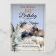 A winter-themed birthday invitation featuring snowy mountains, falling snow, evergreen trees, and watercolor polar bears, with elegant script typography, a soft pastel color palette, and a serene Arctic wilderness atmosphere; perfect for a winter birthday, milestone celebration, rustic winter party, or nature-inspired event.