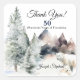 A winter-themed sticker featuring snowy mountains, falling snow, evergreen trees, and watercolor polar bears, with elegant script typography, a soft pastel color palette, and a serene Arctic wilderness atmosphere; perfect for a winter birthday party favor, milestone celebration, rustic winter party, or nature-inspired event.