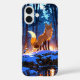 Mystical anime phone case featuring a glowing fox spirit in a snowy forest under the moonlight. Perfect for fans of magical and fantasy winter scenes.
