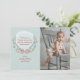 A delicate wreath of berries, foliage and flowers tied with a bow against a light sea-foam, snowy background. Pair it with your photo for a one-of-a-kind greeting card.