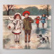 A heart warming scene from a by gone era: happy people skating on a frozen pond.