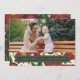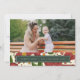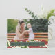 Elegant holiday photo card features your favorite image with a bottom border of red poinsettia flowers, festive green foliage and tiny white blossoms. Personalize with your custom greeting, name(s) and the year in ivory lettering on a stripe of hunter green, then add two additional photos and more text to the back, on a matching patterned background.