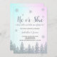 He or She? This winter gender reveal invitation is the perfect way to announce your upcoming reveal party! With a winter woodland featuring glitter snowflakes in pink and blue, this invitation is both beautiful and on-trend. It's fully customisable, allowing you to add your own personal touch to the design. Order your gender reveal invitations today and get ready to reveal the exciting news to your loved ones!